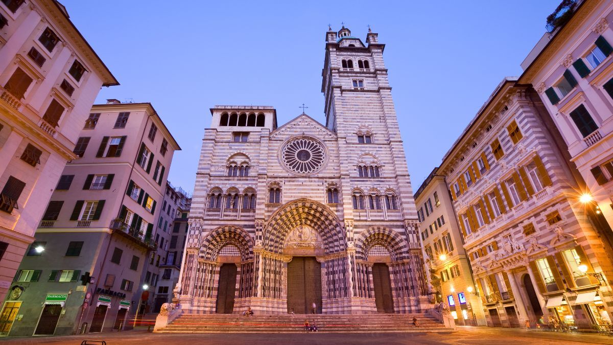 Рядом возвышается Собор Сан-Лоренцо, главный храм Генуи, построенный в 12–14 веках. Его фасад украшен черно-белыми полосами, символизирующими контраст света и тьмы. Внутри хранится священная реликвия — чаша, которую традиция связывает с легендой о Святом Граале. Сокровищница собора содержит уникальные артефакты, включая крест из чистого золота и драгоценные ткани.